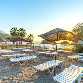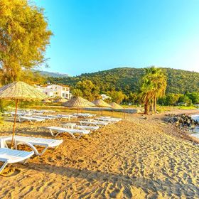 Prywatna, piaszczysta plaża z kamienistym wejściem do wody, oddalona 250 m od hotelu, oferuje bezpłatny dostęp do leżaków i parasoli, co umożliwia pełen komfort wypoczynku nad morzem.