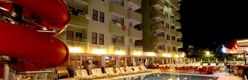 Spędziłam w tym hotelu dwa tygodnie i jestem bardzo zadowolona. Hotel wypadł na 6 blisko centrum, port, plaża zejście do moża kamieniste ale można przejechać dwa praystanki dolomuszem za 1 lira i będziemy na pieknej plaży kleopatra, ja tak robiłam. Wyżywienie bardzo dobre, animacja jest raz w tygodniu w poniedziałek wieczór turecki. Przemiła obsługa, opcja all super nie chrzczone piwo, dobre wino czerwone:-) Pokoje sprzątane wszystko lśni:-) Wszystkie pokoje z aneksem kuchennym. W hotelu dwa baseny jak na Alanye całkiem nie małe, jeden basen ze zjeżdzalnią, woda w basenach czysta. Nie podobało mi się jedynie w hotelu namawianie na specjał w hotelu kolacje płatną. Taka kolacja dla dwojga 25 EUR jak dla mnie dużo. A po drugie codzień kolacja w opcji all jest tak wypasiona uważam że nie ma sensu, no chyba że ktoś chce zaszpanować:-) Ja stanowczo dziekowałam i dawali mi spokój Ci co byli nie zdecydowani codzień męczyli. Wycieczki kupować na mieście albo u wujka i Mariolki biuro mieści się na Dallmatas albo u Leny Pachor na końcu ul. Attaturka, u rezydentki bardzo drogie. Acha ważna sprawa co niektutych turystów polskich łapały problemy żołądkowe, zmiana flory bakteryjnej radze wziąść NIFUROKSAZYD. Polecam ten hotel z czystym sumieniem.