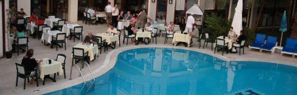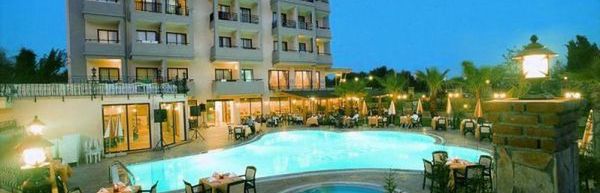 [Hotel:] trzygwiazdkowy, kameralny, zbudowany w 2000 r., odnowiony w 2006, 69 pokoi 1 budynek, 4 piętra, 2 windy, lobby, całodobowa recepcja, restauracja główna, restauracja na świeżym powietrzu przy basenie; w restauracjach kuchnia turecka i międzynarodowa, dostępne dania wegetariańskie i foteliki dla dzieci; 3 bary, sklep, duży ogród; bezpłatny Internet bezprzewodowy w lobby; za opłatą: lekarz na wezwanie, pralnia; akceptowane karty kredytowe: Visa, MasterCard.