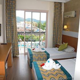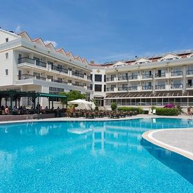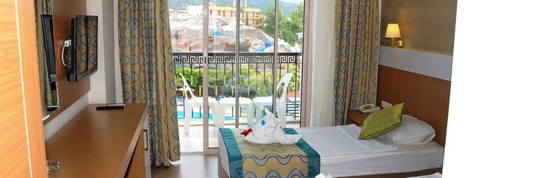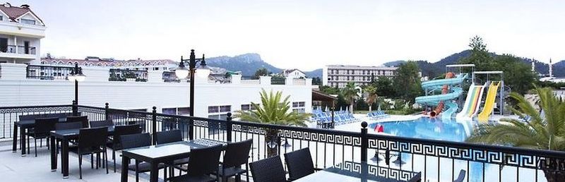 Hotel położony bardzo blisko centrum 8 minut spacerkiem i jesteś pod wieżą zegarową przy głównym deptaku. Hotel składa się z 2 budynków, 2 basenów odkrytych,1 basen i brodzik Kryty, 2 brodzików odkrytych, 3 zjeżdżalni, 1 bar. Dużo stolików z krzesłami na zewnątrz dodatkowo miejsca klimatyzowane w restauracji. Przy basenie sporo leżaków ok południa można znaleźć miejsce niestety zauważyłam że ludzie rezerwują leżaki ręcznikami ok 7/8 rano a przychodzą dopiero ok 15 przez co inni nie mogą skorzystać z tych miejsc. W recepcji obsługa ma problem z j.angielskim ale są chętni do pomocy wspomagając się translatorem google nie zbywają człowieka. Jedzenie uważam że było bardzo urozmaicone na 7 dni tylko 1 raz kolacja się powtórzyła. Śniadania to sery, wędliny, sałatki, pieczywo, jajka gotowane, ciasto francuskie z serem białym, jajecznice, jajka sadzone, naleśniki. Ok 11/12 lody gałki przy barze na zewnątrz, Lunch zupy, mięsa, makarony, frytki, warzywa, pieczywo tureckie, ok 15/16 przekąska w postaci tortilli, mini burgerów w barze na zewnątrz, podwieczorek ciasta, kolacja spaghetti, ryby, kurczaki, warzywa. Przy śniadaniu, lunchu i kolacji dostępne owoce zwłaszcza arbuzy, pomarańcze i jabłka, czasem brzoskwinie, śliwki,winogrona. Kawa i herbata dostępna cały czas zarówno przy restauracji jak i przy barze. Bar czynny od 10 do północy. Barmani którzy przychodzą po 12.00 dyskryminują Polaków faworyzując Rosjan, widać między nimi walkę o napiwki zwłaszcza barman z kucykiem jest nie miły i wybiera sobie Rosjan z kolejki których przywołuje gestem do siebie. Drinki okropnie słodkie, ok 23.30 żeby pozbyć się gości z Baru i tarasów mówią że skończyła się wódka a zaraz później kończy się piwo. Na 7 dni były 2 wieczory z dj do północy z różnorodną muzyka nawet polską, jeden wieczór tematyczny turecki tzn jedzenie, wystrój tarasu, występ grupy tanecznej. Pokoje czyste, sprzątane codziennie, wynoszone śmieci, myte podłogi, świeże ręczniki, nowe kosmetyki, zasłane łóżka z płatkami kwiatów. Łazienki czyste, zadbane 6/10