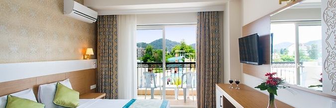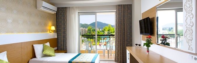 All Inclusive: Śniadania, obiady, kolacje w formie bufetu, po południu kawa, herbata, ciasto. Wszystkie napoje alkoholowe i bezalkoholowe lokalne z wyjątkiem soków ze świeżych owoców i kawy po turecku dostępne są bezpłatnie w godz. 10:00-24:00. Na plaży all inclusive nie obowiązuje.