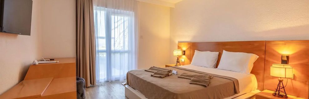 Hotel nadaje się ewidentnie do remontu. Pokoje tak jak na zdjęciach są zaniedbane z podejrzanymi plamami na podłodze i pościeli. Dało się zauważyć włosy pozostałych gości w łazience, były niedomykające się drzwi wejściowe do łazienki. Czasami leciała żółta woda z kranu, a w umywalce był brak ciepłej wody. Do tego nieszczelne okna i drzwi wejściowe. Jedyny plus w pokoju to działającą klima, ale jej stan techniczny wątpliwy. Dostaliśmy pokój dwuosobowy z podwójnym łóżkiem oraz dodatkowym pojedyńczym, przez co było ciasno. Poprosiliśmy o wyniesienie łóżka. Prośba została zaakceptowana, lecz Pan z obsługi o niej zapomniał i łóżko nie zostało wyniesione. W lobby brak wifi, obicanego w ofertach wakacyjnych. Woda w basenach jest nieczysta, a na zewnątrz podwórko uprzątnięte prowizorycznie. Jedzenie nieświeże, nie podgrzewane, dziwnie pachnące. Brak klimatyzacji na stołówce, jedyny plus to widok z tarasu. Dużo by wymieniać tego co jest do zmiany i poprawy... Obsługa stara się nadrobić życzliwością i uprzejmością to jak wygląda hotel. Szkoda, że nie utrzymują czystości tak dobrze, jak bardzo chcą pomóc swoim gościom. Ewidentnie ilość gwiazdek zawyżona przez właściciela. Przez to cena też jest wysoka. Uważam, ze nie jest wart swojej ceny. Lokalizacja hotelu może zachęcić, widoki są piękne, ale lepiej nie ryzykować pobytu tam.