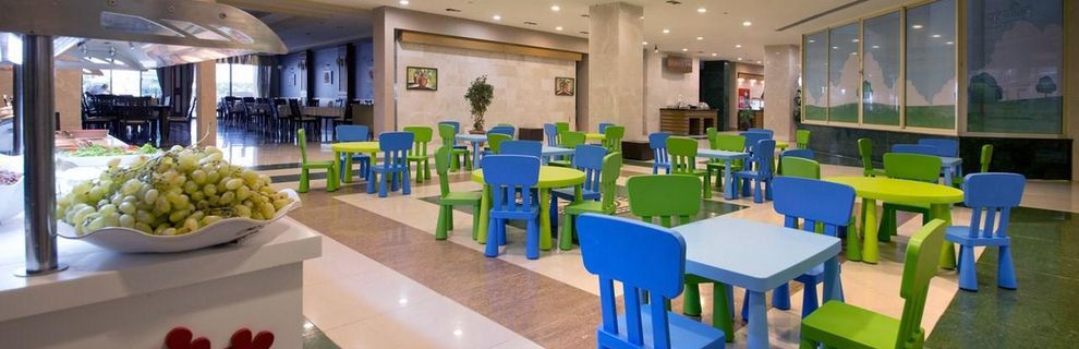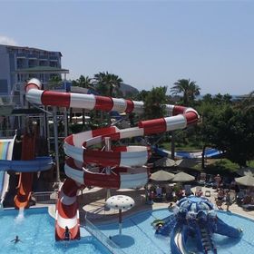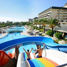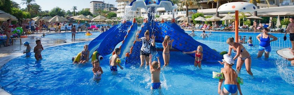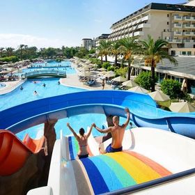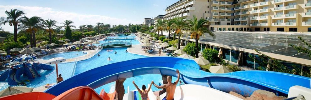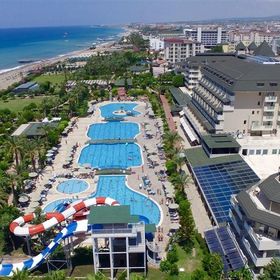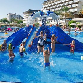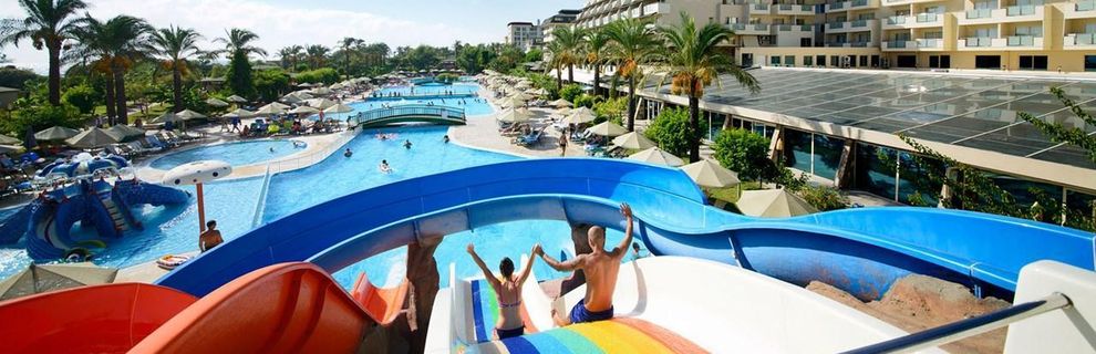Hotel położony bezpośrednio przy malowniczej, piaszczysto-żwirowej plaży, stanowi doskonały wybór dla rodzin pragnących spędzić wakacje w słońcu. Dzieci z pewnością pokochają aquapark z 10 zjeżdżalniami zarówno dla dorosłych, jak i najmłodszych. Hotel oferuje nie tylko relaks przy basenach, ale również szereg aktywności sportowych dla osób preferujących bardziej czynny wypoczynek. Goście mogą cieszyć się grą w tenisa na jasnych kortach, grać w bilard, rzutki, kręgle, czy korzystać z siłowni. Na terenie obiektu znajdują się również liczne restauracje i bary, serwujące zarówno lokalne przysmaki, jak i dania kuchni międzynarodowej.