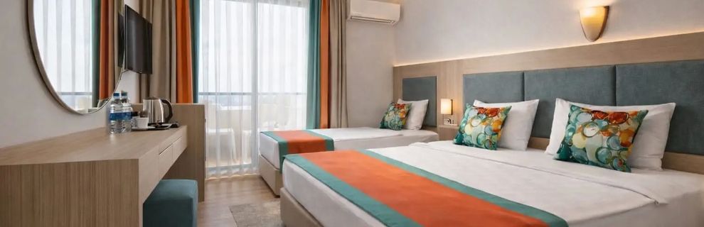 Nowoczesny hotel położony w spokojnej, zielonej okolicy to idealny wybór na wakacje w kameralnej atmosferze, zarówno dla rodzin z dziećmi, jak i dla par. Goście znajdą tu komfortowe warunki, przyjazną obsługę oraz bogactwo udogodnień stworzonych z myślą o relaksie. Bliskość prywatnej plaży, rozbudowane strefy basenów z aquaparkiem i zjeżdżalniami, szeroka oferta restauracji a la carte, bary, animacje oraz liczne atrakcje sportowe sprawiają, że każdego dnia można odkrywać inny wymiar wypoczynku.