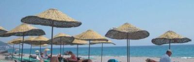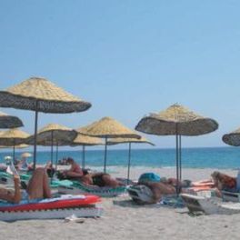 120 m od hotelu, prywatna, piaszczysto-żwirowa, 300 m długości. Parasole, leżaki i materace bezpłatne. Brak ręczników plażowych. Przejście do plaży przez ulicę lub tunelem.