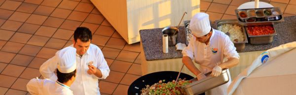 śniadanie (7.00-10.00), późne śniadanie (10.00-10.30), obiad (12.30-14.30), kolacja (18.30-21.00); przekąski w ciągu dnia, popołudniowa kawa, herbata i ciastko; zupa o północy (23.30-24.00); napoje bezalkoholowe i lokalne napoje alkoholowe w wyznaczonych barach (10.00-1.00); raz na pobyt kolacja w restauracji ? la carte (wymagana wcześniejsza rezerwacja; wymagane noszenie opasek all inclusive.