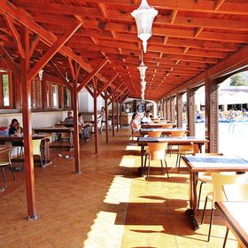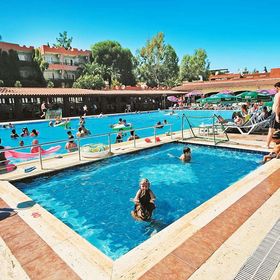 Oferuje zewnętrzny basen z zjeżdżalnią, otoczony leżakami i parasolami, co zapewnia idealne warunki do relaksu dla całej rodziny.