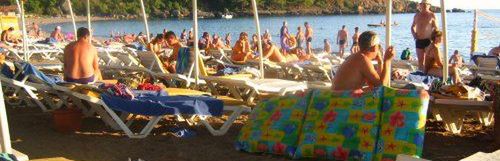 Bezpośrednio przy hotelu, żwirowo - kamienista (leżaki, parasole materace bezpłatne).