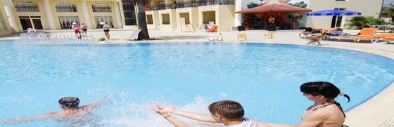 Pięciopiętrowy budynek główny, posiada łącznie 117 pokoi, lobby z recepcją, trzy windy, restaurację z tarasem, snack bar, kafeterię, bar na plaży, dyskotekę, ogród, mały plac zabaw dla dzieci, kącik gier (płatny), kącik TV, scenę, małą salę konferencyjną, sklepiki z pamiątkami, basen z oddzielnym brodzikiem dla dzieci, zjeżdżalnię (czynna w godzinach wyznaczonych przez hotel). Leżaki, materace, parasole bezpłatne, ręczniki za kaucją.