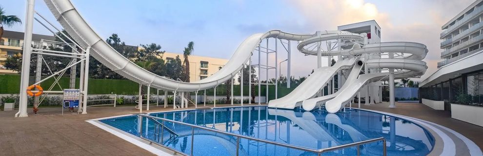 W hotelu znajdują się 2 baseny zewnętrzne, w tym 1 z 4 zjeżdżalniami wodnymi, oraz 2 baseny wewnętrzne, z których 1 jest przeznaczony dla dzieci.
