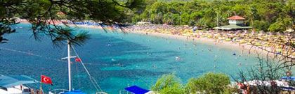 bezpośrednio przy morzu, w zatoce o turkusowoniebieskiej wodzie, oddzielony jedynie promenadą od żwirowej plaży. Plaża wyróżniona Błękitną Flagą za czystość wody. W pobliżu mały port jachtowy, idealne miejsce na spacer. Do centrum Kemer ze sklepami, barami i restauracjami ok. 5 min spaceru. Do Antalyi ok. 45 min jazdy (dogodne połączenia dolmuszami i taksówkami).