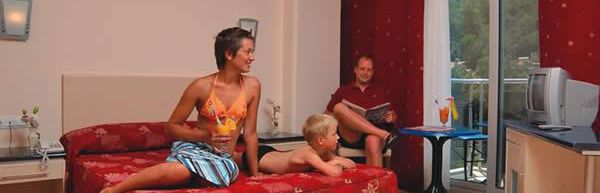 Nowocześnie urządzone dwuosobowe z możliwością jednej dostawki posiadają indywidualną klimatyzację, łazienkę z wanną lub prysznicem i suszarką, TV-SAT, telefon, internet (za opłatą), balkon. Sejf i lodówka za dodatkową opłatą.