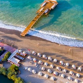 Położony przy szerokiej, pięknej, piaszczystej plaży z drobnym żwirkiem.