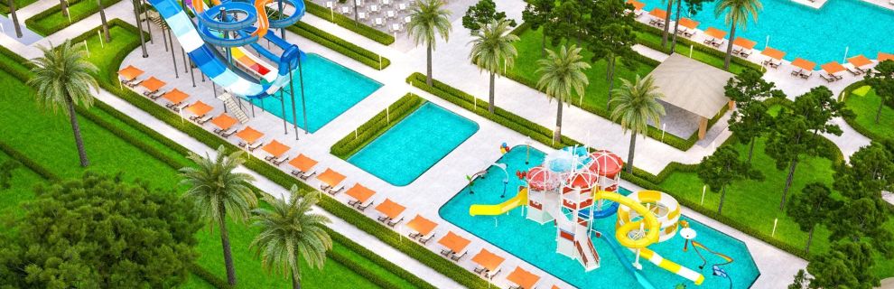 Na terenie hotelu znajduje się 5 zewnętrznych basenów (wybrane podgrzewane sezonowo), basen z 5 zjeżdżalniami dla dorosłych, basen z 4 zjeżdżalniami dla dzieci (podgrzewany sezonowo), 2 baseny wewnętrzne (w tym 1 dla dzieci), a także sezonowo podgrzewany basen dla dzieci.