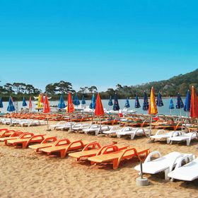 Szeroka, piaszczysto-żwirkowa, około 200 m od hotelu. Parasole i leżaki na plaży dodatkowo płatne, przy basenie bezpłatne.