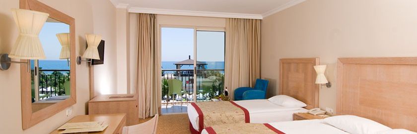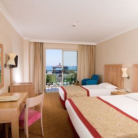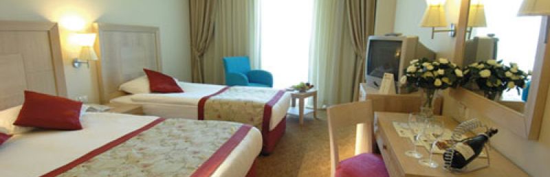 Hotel w opiniach jest wysoko oceniany. Mam wrażenie zupełnie inne. Mały teren przyległy do hotelu. Basen cały czas zatłoczony, brak możliwości normalnego pływania. W hotelu bardzo duża grupa gości z Turcji. Trzeba zajmować leżaki wcześniej zarówno nad morzem jak i przy basenie, gdyż później nie ma szans na normalny wypoczynek. Jedzenie jest ok. Każdy coś dla siebie może znaleźć. Widok z okna boczny na morze, tak jest w ofercie i tak jest jak się wychylisz mocno z balkonu. Bliskie sąsiedztwo sąsiadującego hotelu - okna w okna. Obsługa kelnerska w restauracji na kolacji czy obiedzie to porażka. Bardziej akceptują swoich rodaków niż cudzoziemców.