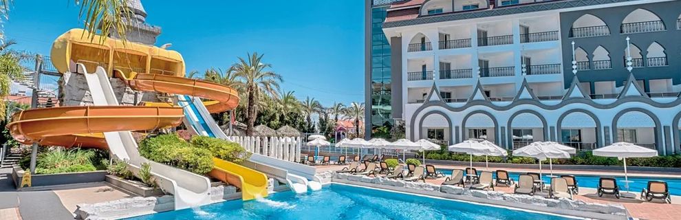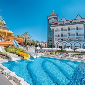 Wakacje w tym hotelu spędzałam z 4 osobową rodziną w tym 8 letnie dziecko. Hotel jest przystosowany do wypoczynku z dzieckiem- salon gier, plac zabaw, zjeżdżalnie wodne, zabawy dla dzieci. Do hotelu przyjechaliśmy około 11 godz, zostaliśmy miło przywitani, bagaże zostawiliśmy w holu, zakwaterowanie mieliśmy dopiero około 14 godz, ale już od wcześniej mogliśmy korzystać z uroków hotelu. Hotel z eleganckim wystrojem , zimne napoje, owoce dostępne przy recepcji. W lobby znajdują się wygodne sofy, także można się na nich przespać w oczekiwaniu na pokój :D Mocna klimatyzacja, a to zbawienie przy takich wysokich temperaturach. Pokój na naszą 4 os rodzinę otrzymaliśmy w drugim budynku przy basenie. Otrzymaliśmy jedno duże łóżko, jedno mniejsze łóżko oraz rozkładaną dostawkę. Niestety hotel ten do 5 gwiazdkowego standardu nie należy, ale ja daje mu mocną 4, pokoje nadają się do odświeżenia, odchodząca tapeta, pobrudzone ściany czymś czerwonym, żółtym i ta duża ilość kurzu na tapecie powdowiała alergię i ciągłe kichanie. Ściany pokoju bardzo cienkie, ja trafiłam na sąsiadów z malutkim dzieckiem, także nocne płacze i ciągłe trzaskanie drzwiami od szafy stawały się irytujące. Okna mocno wygłuszające także hałasów z zewnątrz brak :) Pokoje sprzątane były codziennie, minibar uzupełniany codziennie, także woda i inne napoje były pod dostatkiem. Pani sprzątająca prze miła osoba, bardzo pomocna, mimo, iż nie potrzebowaliśmy sprzątania pokoju, zawsze świeże ręczniki były postawione w pokoju. Trzeba zwracać uwagę na ręczniki bo niestety bywały mocno zużyte, albo pozostawiona była na nich krew albo coś podobnego do gila z nosa. Klimatyzacja działała bez zarzutów, mocno wychładzała pokój. Obiekt posiada kilka basenów, także nie było walki o leżaki z samego rana :) jeden basen znajduje się na tyłach hotelu i przy nim gra muzyka i są animacje. Drugi basen z 3 rodzajami zjeżdzal, trzeci basen rekreacyjny, ciągnie się, aż do kolejnego budynku hotelu. Trzeba uważać na posadzkę ponieważ jest bardzo śliska i bywają na niej wypadki. Niestety widać, że ilość gości przewyższa ilość osób w obsłudze hotelu. Zdarza się, że puste kubki po napojach czy opakowania po lodach walają się po podłodze. Jedzenie serwowane jest przy basenie w godzinach przedpołudniowych, także można zjeść cos z grilla, makarony czy zrobić samemu burgera. Bardzo dobre są owoce, i plus za lodówki z zimną wodą i jogurtami. W restauracji serwowane jest bardzo dobre jedzenie, zróżnicowane menu, ogrom mięs, dodatków, pieczonych, smażonych warzyw i bardzo dobre wyroby cukiernicze. Pyszne owoce. Na pewno każdy znajdzie coś dla siebie. Trzeba kilka razy obejść sale w celu znalezienia wolnego stolika, pani sprzątająca z lekka ogarnia stolik po innych osobach, niestety ale wszystko się klei do siebie, talerze bywają nie domyte. Czystość w restauracji wymaga dużo do życzenia! Kolacja kończy się o 21, ale już o 23 dla nocnych głodomorów otworzona jest sala z późną kolacją: ryż, mięso w sosie, dodatki, zupy,ciasta. Podczas mojego pobytu były dwie tematyczne kuchnie: włoska oraz turecka. Mnie bardzo smakowało jedzenie. Drinki serwowane w barze są słabe :-D kolorowe ale mega słodkie, i alkoholu w nich raczej nie uraczysz. Dla dzieci również serwowane są drineczki ale bez alkoholu :D Piwo i wino białe baaaaardzo smaczne :) Hotel znajduję się blisko przystanku autobusowego, z którego w ciągu 15 min dotrzemy do centrum Side- koszt 1,5 euro/os. Po drugiej stronie hotelu znajduje się masa bazarów, szukajcie Łukasza (duży sklep z rzeczami po lewej stronie idąc od hotelu), fajnie wam doradzi w zakupach :) . Do plaży hotelowej jest około 7min spacerem, widziałam ,że za dnia jeżdżą autobusy na plaże spod hotelu, ale ja nie korzystałam. Wifi działa w całym hotelu, nawet na plaży hotelowej. Jeżeli chodzi o kolację a'la carta niestety nie udało się jej zarezerwować, trzeba pamiętać o tym zaraz po Check in-e. Jeżeli ktoś spytałby się mnie czy wróciłaby jeszcze do tego hotelu, to po odświeżeniu pokoi i lepszej jakości czyszczenia restauracji wróciłabym ponownie.