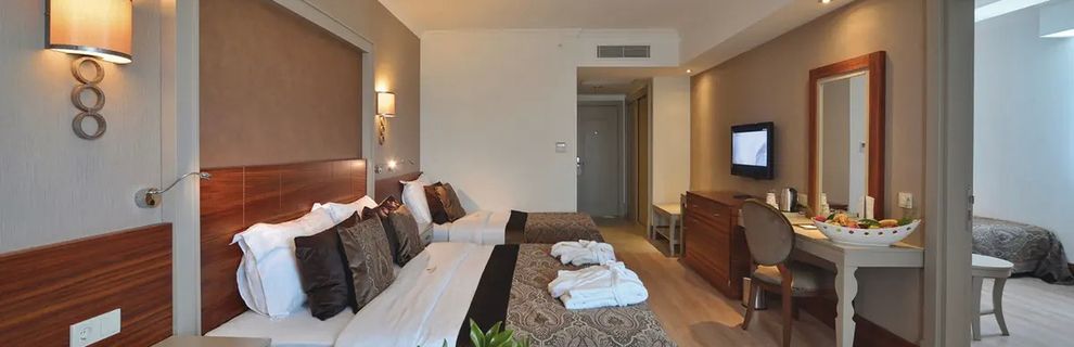 Komfortowy hotel o lokalnej kategorii 5 gwiazdek, otwarty w 2015 roku. Hotel oferuje 315 luksusowych pokoi zlokalizowanych w pięciu budynkach na czterech piętrach. Oferujemy elegancko urządzone wnętrza oraz różnorodne udogodnienia, w tym główną restaurację w formie bufetu, trzy restauracje a la carte serwujące kuchnię włoską, turecką i rybną, bary oraz klub nocny.