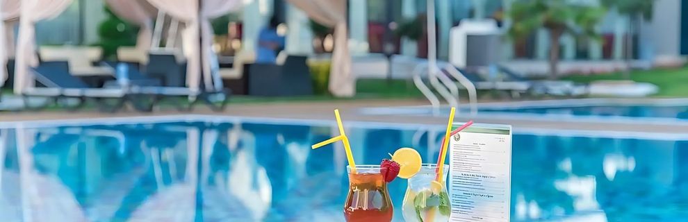 2 zewnętrzne baseny o nieregularnym kształcie (czynne sezonowo), a także kryty basen z jacuzzi. Przy basenach bezpłatnie dostępne są leżaki i parasole.