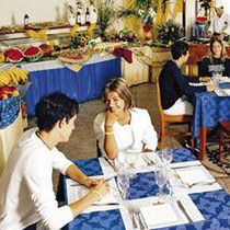 All Inclusive. Wszystkie posiłki w formie bufetu. Raz w tygodniu kulinarne atrakcje. Możliwa rezerwacja kolacji w pizzerii (bez dopłaty, różne godziny otwarcia w zależności od sezonu). Napoje bezalkoholowe i piwo do posiłków w cenie. Od 10.00 do 24.00 lokalne napoje alkoholowe i bezalkoholowe, kawa, lokalny likier i różnego rodzaju przekąski w cenie. Lody i napoje butelkowe za opłatą.