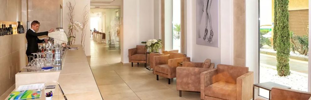 Hotel zlokalizowany jest nad brzegiem morza w północnej dzielnicy kurortu Rimini - Torre Pedrera,. W pobliżu znajdują się liczne sklepy, bary i restauracje. Przystanek autobusowy, skąd dojechać można do centrum Rimini ? ok. 300m, stacja kolejowa Rimini Torre Pedrera ? ok. 350m. Park Miniatur Italia in Miniatura ? ok. 3km; Historyczne centrum miasta Rimini ? ok. 8km.