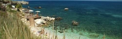 Ponad 1 km prywatnego, przepięknego wybrzeża - skaliste z piasczystymi zatokami , najmniej skażony region Morza Śródziemnego. Do plaży można dotrzeć pieszo lub dowozi bezpłatny bus hotelowy. Zatoczki wyposazone są w leżaki, parasole oraz ręczniki plażowe. Istnieją różne możliwości plażowania, do wyboru: mała plaża piaszczysta, mała plaża żwirkowa, cztery spektakularne platformy ulokowane na skałach. Sporty wodne na plaży (płatne).