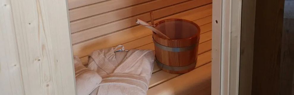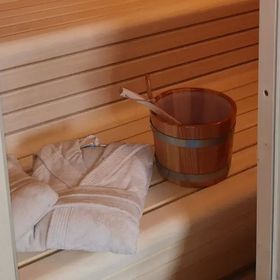 Każdy domek ma prywatną sauną fińską. Na czas pobytu goście mogą wypożyczyć płaszcze kąpielowe.
