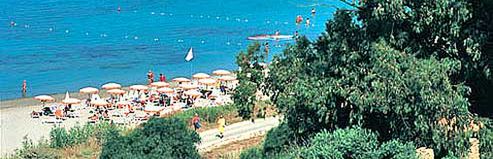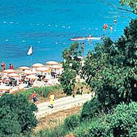 Piaszczysto - żwirowa około 20 min pieszo od hotelu (leżaki i parasole bezpłatne), można do niej dojechać hotelową kolejką (kilka razy dziennie).