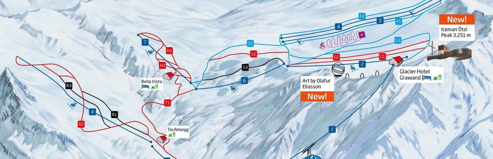 Maks. wysokość: 3212mMin. wysokość: 2011mWys. miejscowość: 1700mWyciągi łącznie: 13Orczyki: 6Krzesełka: 5Gondole: 2Trasy łącznie: 42kmTrasy zielone/niebieskie: 10kmTrasy czerwone: 18kmTrasy czarne: 14km