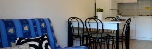 DWUPOKOJOWY apartament dla maks. 3-5 osób - pokój dzienny z dwuosobowym tapczanem i aneksem kuchennym, sypialnia z 3 łóżkami, łazienka, duży balkon.