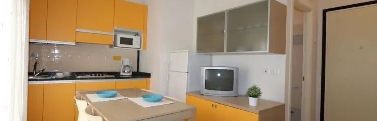 Typ B-4, apartament Bilo dla maks. 4 osób - pokój dzienny z aneksem kuchennym, sypialnia z łóżkiem małżeńskim i 2 łóżkami pojedynczymi, łazienka, taras. Bez miejsca parkingowego.