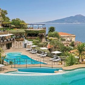 To superior hotel, doskonale wkomponowany w słynne klify Sorrento, który zachwyca malowniczą scenerią, elegancją i tradycją włoskiej gościnności. Gość może podziwiać widok na majestatycznego Wezuwiusza i Zatokę Neapolitańską z tarasów i aż 5 kaskadowo położonych, słodkowodnych basenów. Liczne restauracje a la carte serwują lokalną i międzynarodową kuchnię, a wieczory spędzone w zadbanych, pachnących cytrynami ogrodach dopełniają magii miejsca, które wielokrotnie chwalono za jakość obsługi i oryginalność wystroju. Komfortowe, klimatyzowane pokoje z bezpłatnym Wi-Fi oraz panoramicznymi balkonami i tarasami, zapraszają Gościa do wypoczynku na najwyższym poziomie.