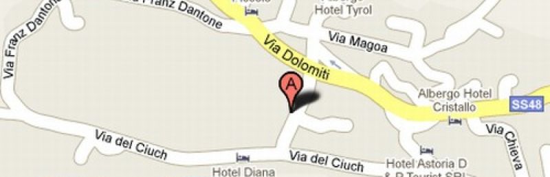 Na wysokości ok. 1456 m n.p.m., ok. 400 m od centrum słynnego Canazei, w dolinie Val di Fassa ok. 700 m od kolejki linowej Pecol (połączonej z wyciągami karuzeli Sella Ronda (Arabba/Alta Badia/Val Gardena). Przystanek skibusa znajduje się ok. 50 m od hotelu.