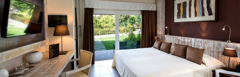 85 elegancko urządzonych, przestronnych pokoi. Pokoje superior, o pow. ok. 30 m2, mogące zakwaterować max. 3 os. dorosłe (dostawka w formie normalnego łóżka), wyposażone są w: łazienkę z prysznicem, suszarkę do włosów, indywidualnie sterowaną klimatyzację, TV Sat., telefon, bezpłatny sejf, minibar (konsumpcja płatna dodatkowo) oraz umeblowany balkon lub taras. Większość pokoi z częściowym widokiem na morze. Pokoje deluxe, o pow. ok. 45 m2, dla max. 3 os. dorosłych, wyposażone jak pokoje superior, posiadają widok na morze i na lagunę.