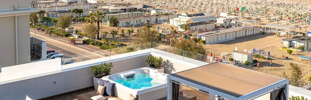 Nowoczesny i kameralny hotel przyciąga Gości wyjątkową atmosferą oraz doskonałą lokalizacją w sercu Marina Centro di Rimini. 40 komfortowo urządzonych pokoi zapewnia poczucie prywatności i spokoju, a dostęp do udogodnień sąsiedniego hotelu Villa Bianca wzbogaca ofertę o dodatkowe możliwości relaksu i rozrywki. Na terenie obiektu Gość może bezpłatnie korzystać z Wi-Fi, odpocząć przy hotelowym barze lub delektować się smakami w restauracji. Dopełnieniem pobytu jest odkryty basen, idealny na orzeźwiającą kąpiel po dniu pełnym zwiedzania lub plażowania. Przyjazna obsługa, bezpłatna pralnia oraz nowoczesne wnętrza tworzą atmosferę sprzyjającą beztroskiemu wypoczynkowi zarówno podczas rodzinnych wakacji, jak i romantycznego wyjazdu we dwoje.