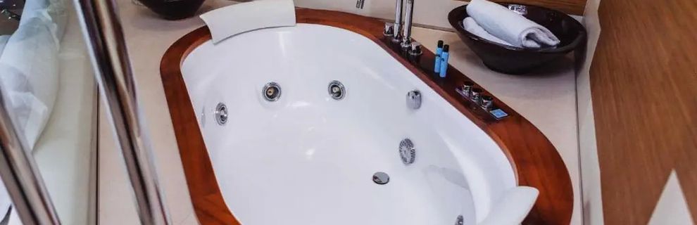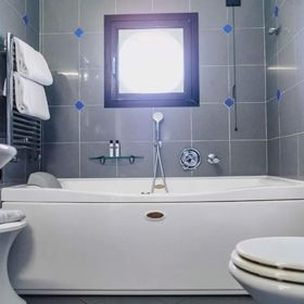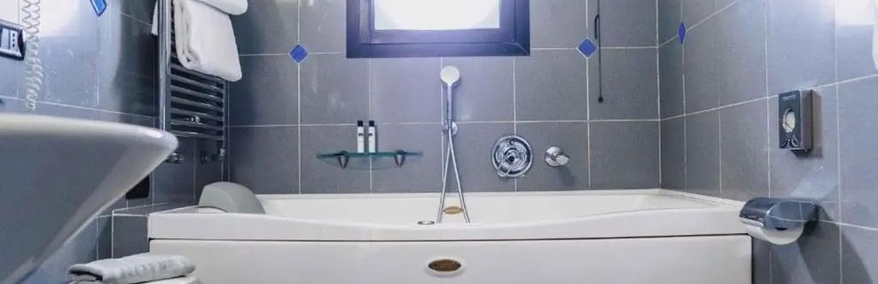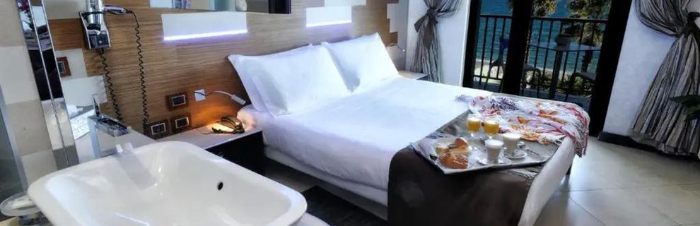 dobrze wyposażone: wanna lub prysznic, WC, suszarka, TV sat., telefon, podłączenie do internetu (za opłatą), sejf, mini bar, klimatyzacja, balkon. A2A: typ Comfort. A2B: typ Prestige, z widokiem na morze.