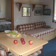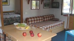 Studio 2/3 - osobowy - składa się z pokoju dziennego z łóżkiem rozkładanym i łóżkiem piętrowym, w pełni wyposażonego aneksu kuchennego (naczynia, sztućce, kuchenka, lodówka), łazienki z WC, TV.