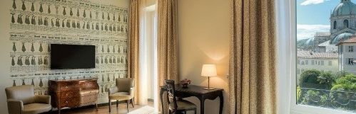 Goście Palace Hotel Como mają do dyspozycji przestronne i stylowe pokoje (niektóre z widokiem na jezioro) wyposażone w mini bar, telewizję satelitarną/kablową i telewizor z płaskim ekranem. Prywatne łazienki posiadają suszarkę do włosów.