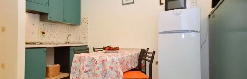 Apt. 4+2 B-6: całkowicie odnowiony apartament BILO, na parterze dla 4-6 osób, sypialnia z łóżkiem małżeńskim i łóżkiem piętrowym, pokój dzienny z rozkładaną sofą dla 2 osób, aneks kuchenny, prysznic/wanna, WC, duży zadaszony taras z markiza, pralka.
