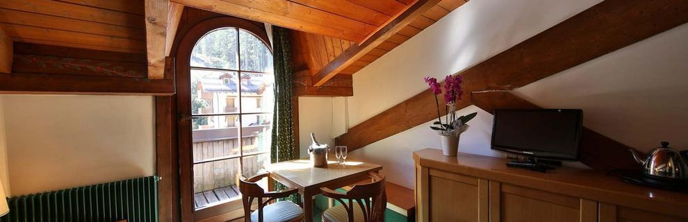W samym centrum miejscowości Madonna di Campiglio (strefa ograniczonego ruchu samochodów i postoju), w dolinie Val Rendena z panoramą Dolomitów di Brenta z dominującym szczytem Groste. Około 100 m od tras zjazdowych i wyciągów.