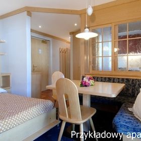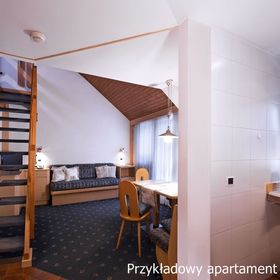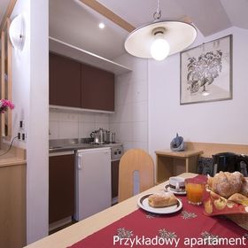 Wszystkie apartamenty komfortowo umeblowane, z pełnym węzłem sanitarnym, wyposażonym aneksem kuchennym, telefonem, TV, pościelą, większość z balkonami.