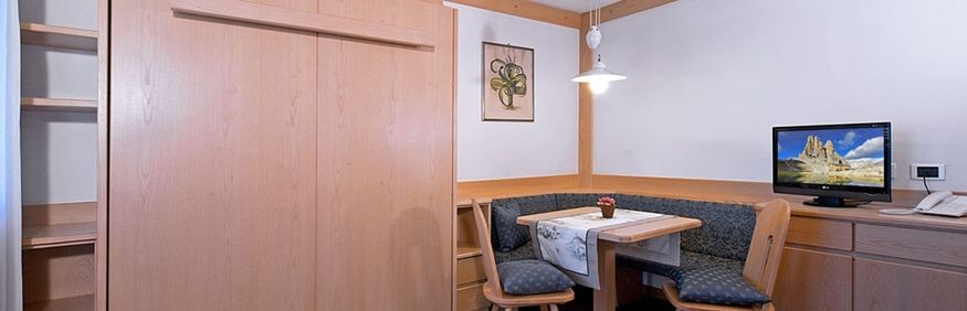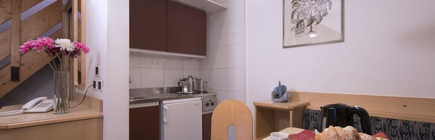 Ok. 500 m od centrum renomowanej miejscowości Canazei w dolinie Val di Fassa na wysokości ok. 1460 m n.p.m. Oddalona tylko ok. 90 m od gondoli Belvedere - Sella Ronda. 100 m od obiektu znajduje się przystanek skibusa.