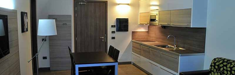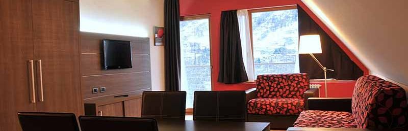 prysznic, WC, suszarka, balkon, wnęka kuchenna (lodówka, kuchenka, piekarnik, k. mikrofalowa), TV sat, sejf, ogrzewanie centralne. F2F: studio dla 2 os. (ok. 28 m kw). Pokój dzienny z podwójnym łóżkiem lub rozkładaną kanapą. F4F: dwupokojowy ap. dla 4 os. (ok. 45 m kw). Pokój dzienny z podwójną kanapą, 1 pokój 2-os. F6F: trzypokojowy ap. dla 6 os. (ok. 65 m kw). Pokój dzienny z podwójną kanapą, 1 pokój 2-os., 1 pokój z łóżkiem piętrowym.