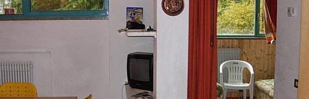 (ok. 50 m2), składa się z sypialni z dwuosobowym łóżkiem, sypialni z łóżkiem piętrowym, pokoju dziennego z rozkładanym dwuosobowym łóżkiem wraz z aneksem kuchennym w pełni wyposażonym (naczynia, sztućce, kuchenka, lodówka), TV. Łazienka z WC.