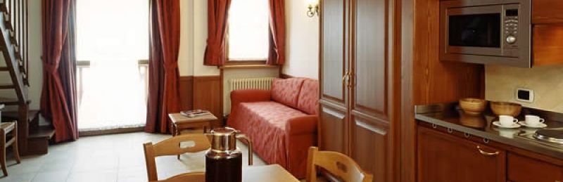 Apartament mono 3-osobowy (ok. 35-40 m2) składa się z pokoju dziennego z rozkładanym podwójnym łóżkiem i łóżkiem pojedynczym oraz aneksu kuchennego w pełni wyposażonego (naczynia, sztućce, kuchenka, lodówka). Łazienka z WC, suszarka do włosów, TV, TV-sat, minibar, telefon, sejf .