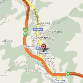Na wysokości ok. 1200 m n.p.m., ok. 800 m od historycznego centrum Courmayer. U podnóża góry Monte Bianco, w Valle d'Aosta, ok. 50 m od wyciągów Funivia Courmayer i 3 km od Val Veny. Ok. 32 km od Aosty.