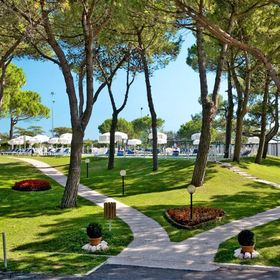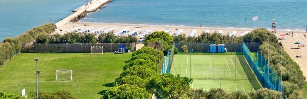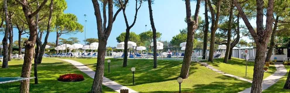 w samym sercu lasu sosnowego, ok. 300 m od centrum Porto Santa Margherita, ok. 2 km od starej, rybackiej miejscowości Caorle. Wenecja jest ok. 60 km.