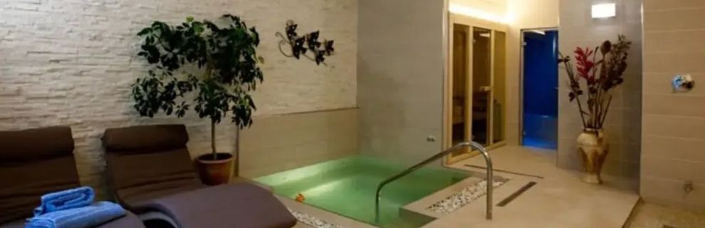 Mały basen z hydromasażem w centrum wellness, dostępny za dodatkową opłatą.