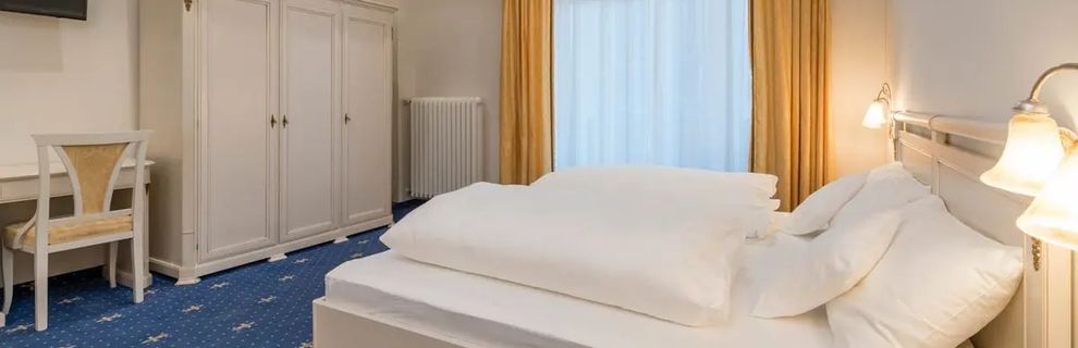 z suszarką, tel., TV-sat., wanną lub prysznicem, WC. WLAN gratis. A2A: pokój 2-os. (ok. 19 m kw.) bez balkonu. A2B: pokój 2-os. (ok. 25 m kw.) niektóre z balkonem.