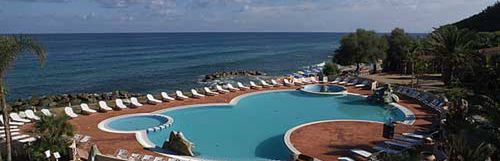 Na stoku, w spokojnym miejscu, otoczony tropikalnym ogrodem, bezpośrednio przy jasnej plaży Torre Marino (piasek miejscami przechodzi w żwir i kamienie, zalecamy zabranie obuwia kapielowego). Do centrum miejscowości San Nicolo di Ricadi ok. 2000 m, do Tropei ok. 8 km (autobus hotelowy za opłatą).